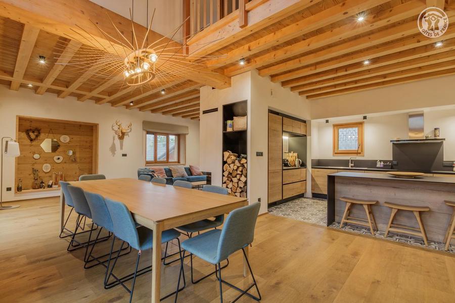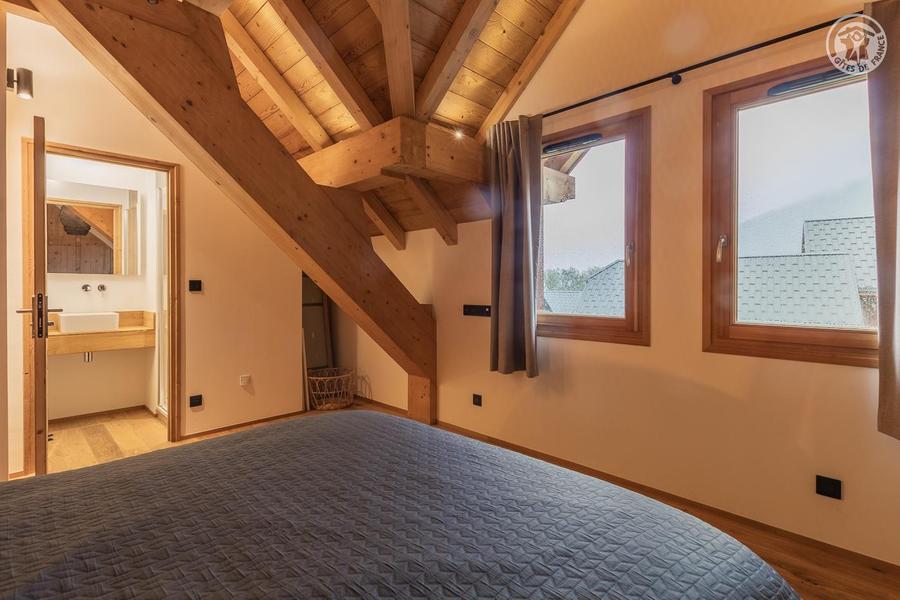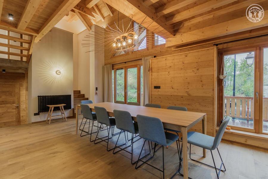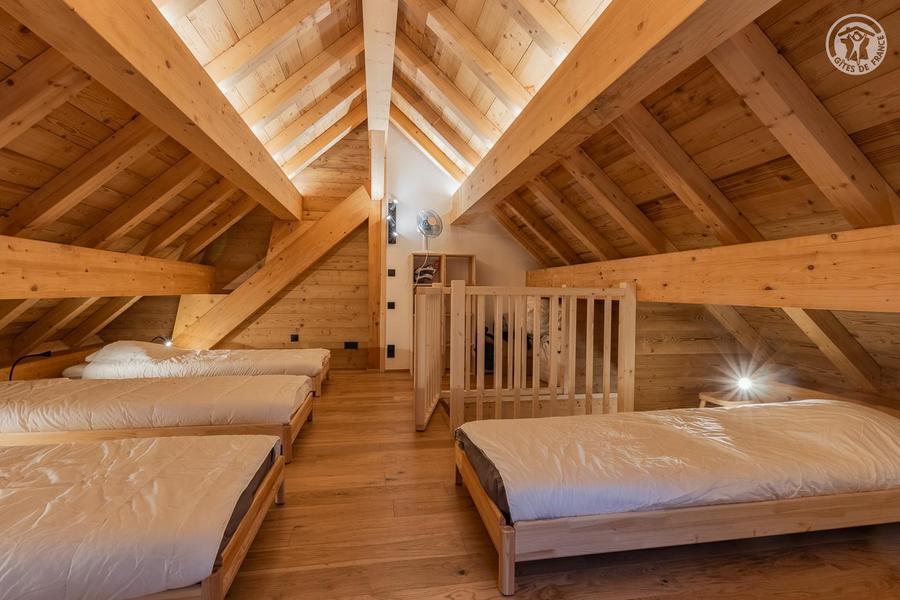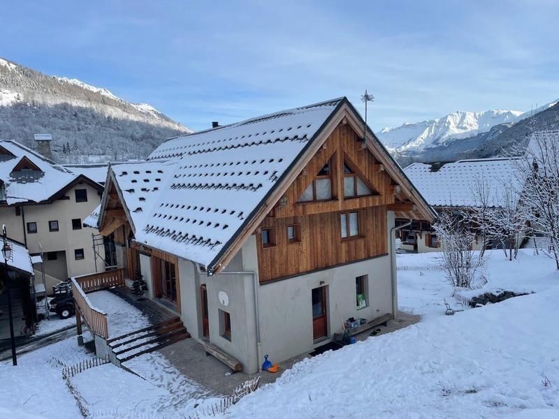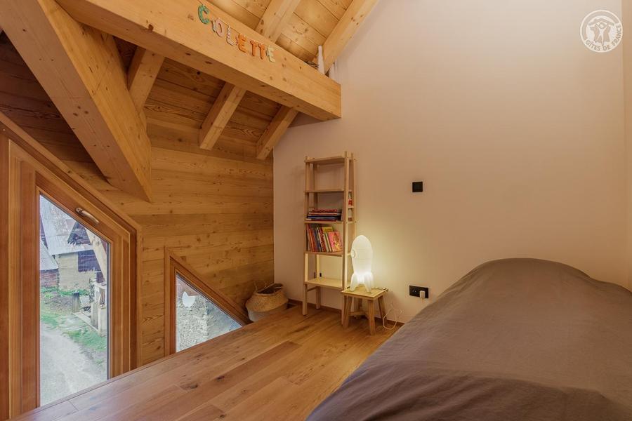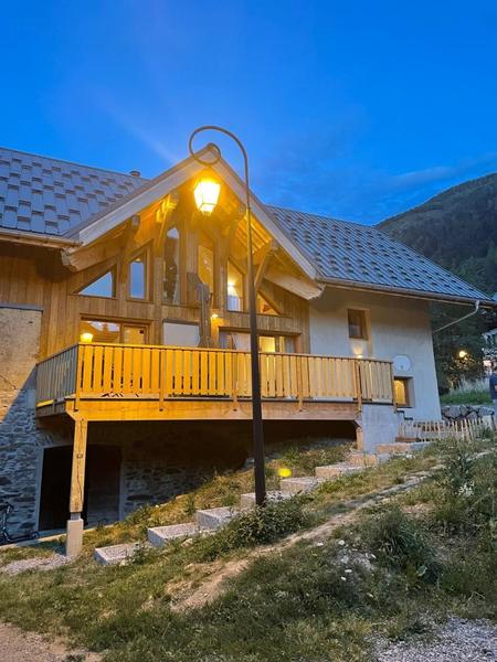 Maison individuelle sur 3 niveaux (accès à pied depuis le parking par un sentier à flanc de talus sur 50 mètres) comprenant au rez-de-chaussée : une entrée avec local à skis et sèche-chaussures électrique, une buanderie, WC séparé, un séjour-cuisine coin salon (cheminée bois fourni). 1er étage : 1 chambre (1 lit 2 personnes 160x200 cm) et salle d'eau (douche), 2 chambres (2 lits 1 personne 90x190 cm gigognes / 1 lit 2 personnes 140x190 cm), une chambre en duplex (coin jeux pour enfants avec TV) avec escalier menant aux combles aménagées avec sous-pentes (dortoir 6 lits 1 personne), une salle d'eau (douche), 2ème WC séparé. Surface totale au sol : 161 m² parties mansardées comprises. 3 terrasses et terrain. Cave voûtée de 25 m² en sous-sol pour ranger skis et vélos. Chalet de pays en pierres, au cœur d'un hameau à 2 km du centre commerçant du village. Très belle rénovation avec une pièce de vie spacieuse et de beaux volumes donnant sur une terrasse orientée à l'ouest. Espaces extérieurs privatifs (chaises longues, 2 tables, 2 parasols, un barbecue à charbon pour 10 personnes et une plancha au gaz pour 10/12 personnes) et petit terrain. L'été, possibilité de décharger la voiture devant le chalet ; l'hiver, stationnement sur un parking public au-dessus du chalet. Commerces de proximité au village durant les saisons d'été et d'hiver ; hypermarché à St Etienne de Cuines à 10 km.