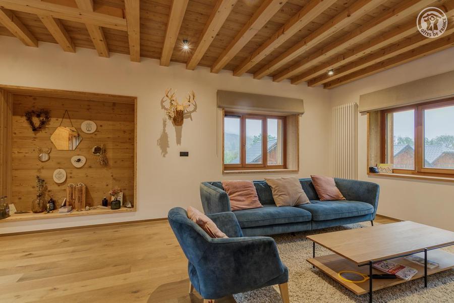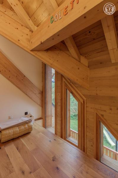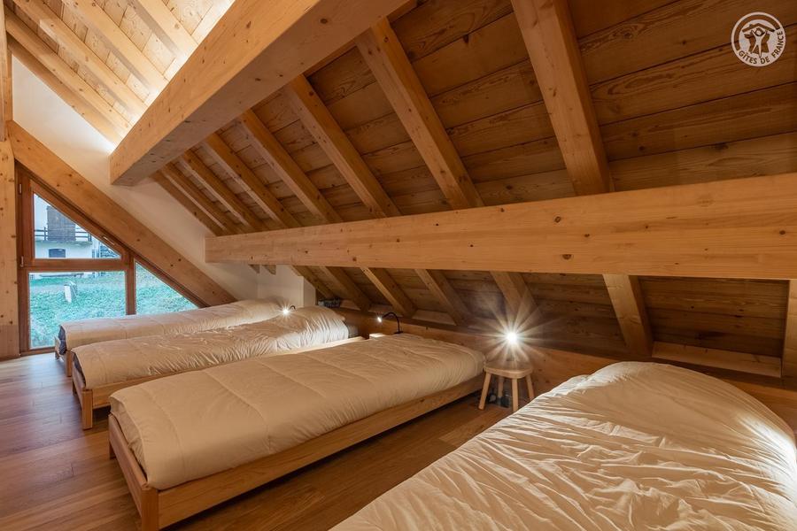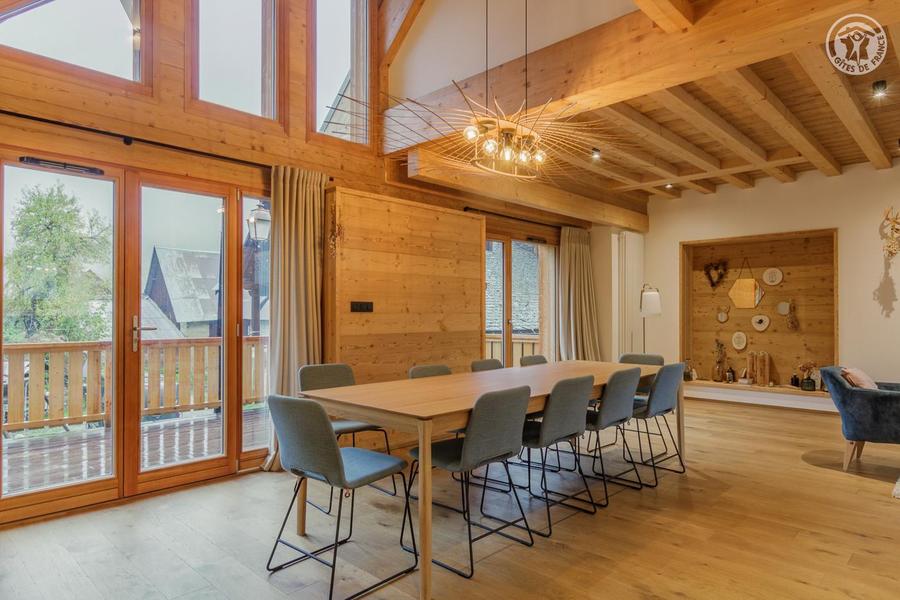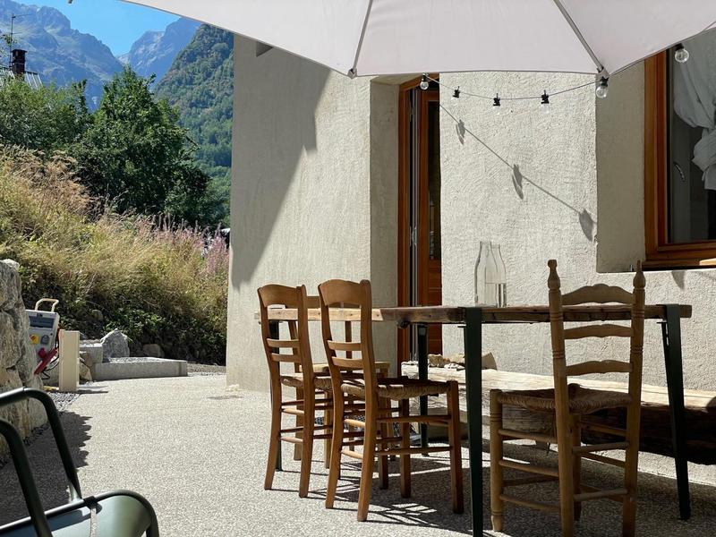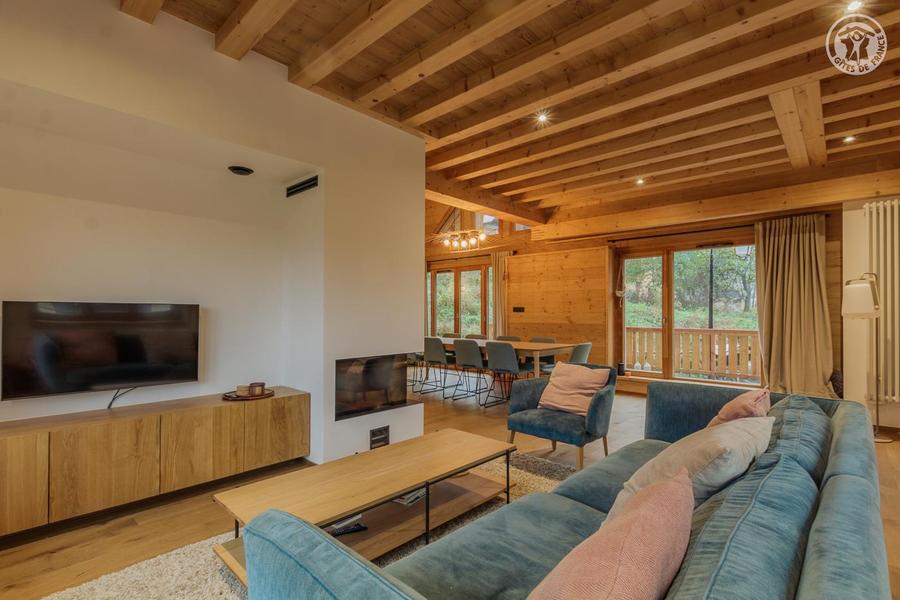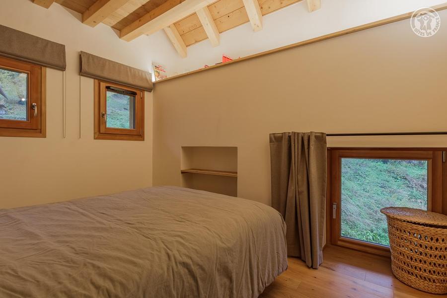 Maison individuelle sur 3 niveaux (accès à pied depuis le parking par un sentier à flanc de talus sur 50 mètres) comprenant au rez-de-chaussée : une entrée avec local à skis et sèche-chaussures électrique, une buanderie, WC séparé, un séjour-cuisine coin salon (cheminée bois fourni). 1er étage : 1 chambre (1 lit 2 personnes 160x200 cm) et salle d'eau (douche), 2 chambres (2 lits 1 personne 90x190 cm gigognes / 1 lit 2 personnes 140x190 cm), une chambre en duplex (coin jeux pour enfants avec TV) avec escalier menant aux combles aménagées avec sous-pentes (dortoir 6 lits 1 personne), une salle d'eau (douche), 2ème WC séparé. Surface totale au sol : 161 m² parties mansardées comprises. 3 terrasses et terrain. Cave voûtée de 25 m² en sous-sol pour ranger skis et vélos. Chalet de pays en pierres, au cœur d'un hameau à 2 km du centre commerçant du village. Très belle rénovation avec une pièce de vie spacieuse et de beaux volumes donnant sur une terrasse orientée à l'ouest. Espaces extérieurs privatifs (chaises longues, 2 tables, 2 parasols, un barbecue à charbon pour 10 personnes et une plancha au gaz pour 10/12 personnes) et petit terrain. L'été, possibilité de décharger la voiture devant le chalet ; l'hiver, stationnement sur un parking public au-dessus du chalet. Commerces de proximité au village durant les saisons d'été et d'hiver ; hypermarché à St Etienne de Cuines à 10 km.