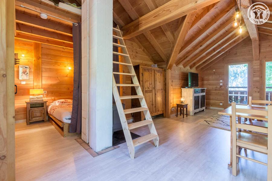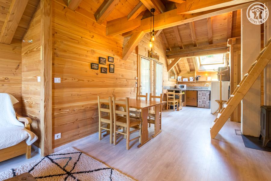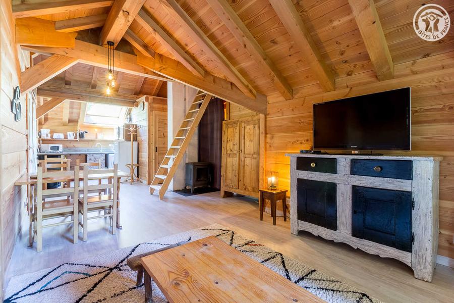 Apartment on the 1st floor of an alpine chalet including other tourist accommodation on the ground floor and 1st floor (the lodgings can be grouped together). The inn (with catering) run by the owners is located opposite the gîte. Independent access from the side of the chalet, then a balcony with a small outside staircase. Living room-lounge-kitchen (1 sofa bed for 2 people), 1 mountain corner (1 double bed 160x190 cm), bathroom (shower and toilet). Balcony-terrace. Ground. Oil bath heating. Arrival and departure on skis in winter. Half-board possible in winter (contact the owners).