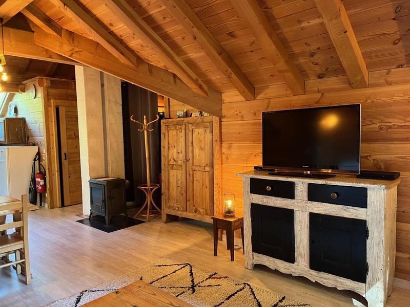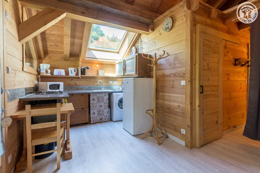 Chalet d'alpage comprenant 2 gites (avec entrée indépendante). Gite au 1er étage comprenant un séjour-cuisine coin salon (un canapé convertible 2 personnes 140x190 cm), un coin montagne fermé par un rideau (1 lit 2 personnes 140x190cm), une salle d'eau (douche avec WC). Balcon abritée. Terrain en commun. En bordure d'une piste d'altitude, à flanc de montagne, dans un cadre de pleine nature entourée de forêts, ce chalet comprenant 2 gites et en face, une auberge au cachet montagnard typique offre un excellent confort. Profitez de la vue sur la vallée et les montagnes environnantes tout en profitant d'un accueil aux petits soins par les gérants des lieux. Demi-pension possible hiver et été auprès de l'auberge du Coin (voir avec les gérants pour réservation). L'hiver, arrivée avant 16h si possible.