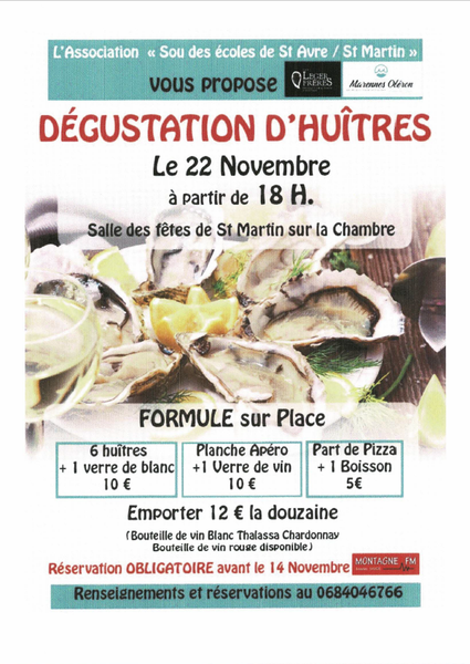 Dégustation proposée par le Sou des écoles de Saint Avre / Saint Martin, à la salle des fêtes de St Martin sur La Chambre