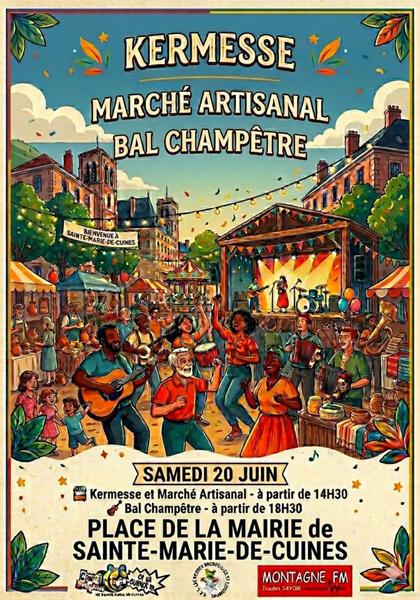 Venez faire la fête au village de Sainte-Marie-de-Cuines ! Kermesse gratuite avec les Petites Grenouilles de l’Edelweiss, marché artisanal, puis bal champêtre en soirée avec musique, buvette et restauration rapide sur place.