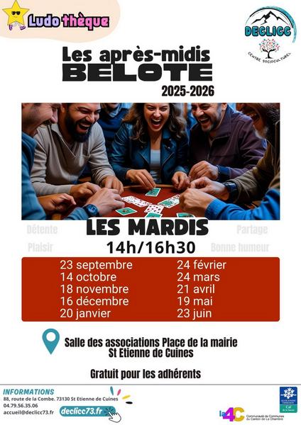 Si vous êtes féru(e)s de jeux de cartes, alors ne manquez pas les après-midis belote organisés par le centre socioculturel DECLICC.